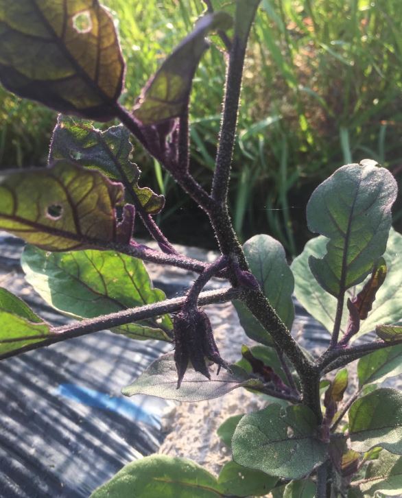 今年は植え付けは順調に進んだものの… 支柱の設置が後回し!!! うかうかしている間に大きくなってきたナスや南瓜。